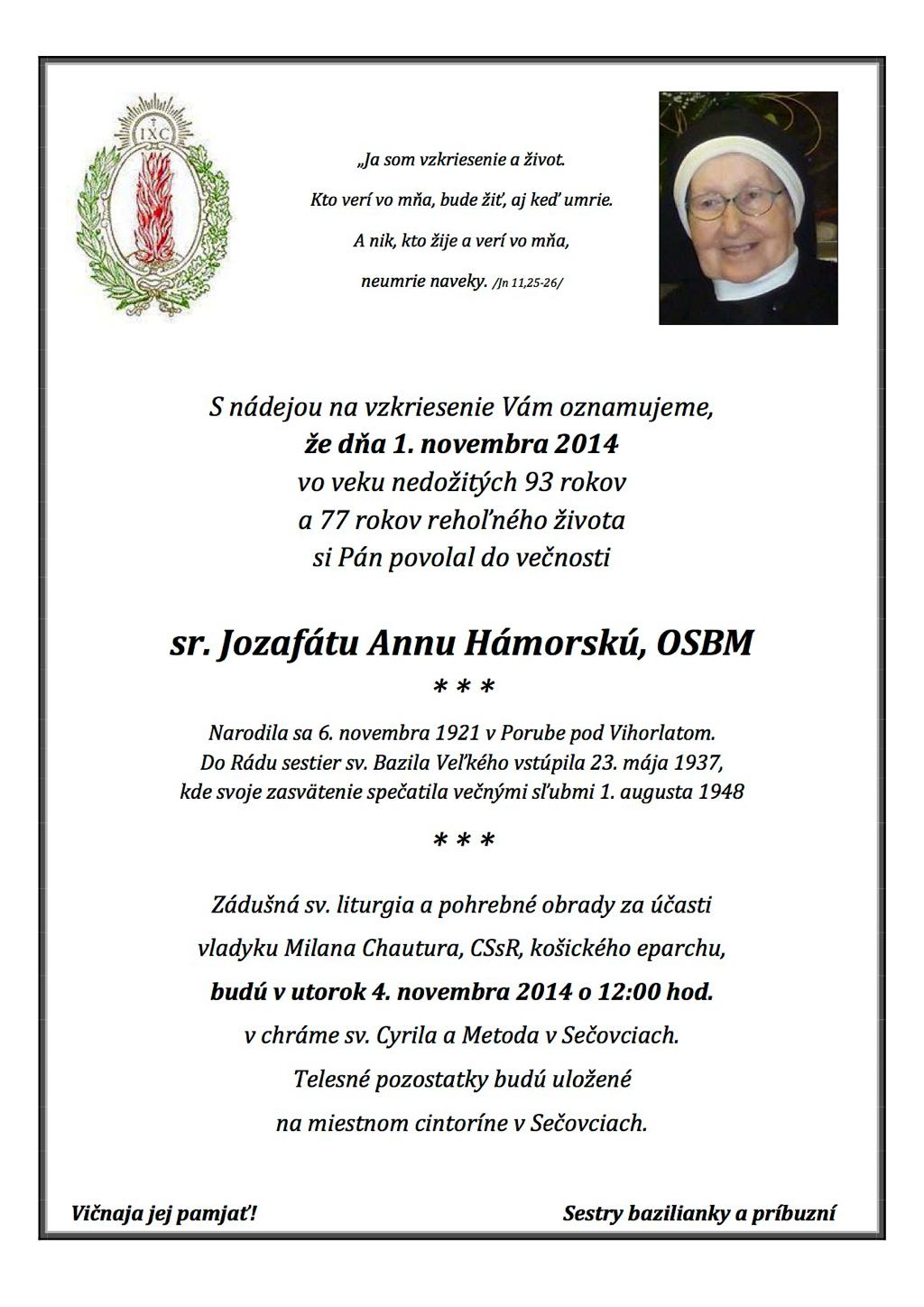 Parte sr. Jozafáty Hamorskej
