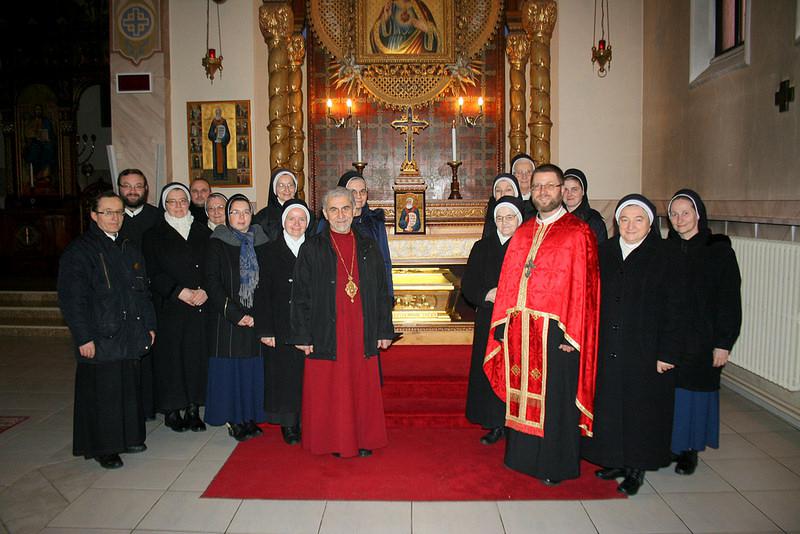 Po spoločnom obede pokračovalo stretnutie zasvätených s vladykom Milanom v kláštore otcov redemptoristov. Bol to čas spoločného zdieľania sa zo životov jednotlivých rehoľných spoločenstiev a ich plánov či vízii do budúcnosti. Zaznelo aj svedectvo o. Pimena Medviďa, ktorý krátko predstavil svoj mníšsky spôsob života. Veľkým povzbudením bola pre nás osoba o. Jána Ivana Mastiliaka CSsR, o ktorého viere a svedectve života sme si pozreli film pripravený o. redemptoristami v spolupráci s p. Vladimírom Semanom. Spoločné stretnutie s naším vladykom sme ukončili modlitbou molebenu k bl. Dominikovi Metodovi Trčkovi CSsR.
